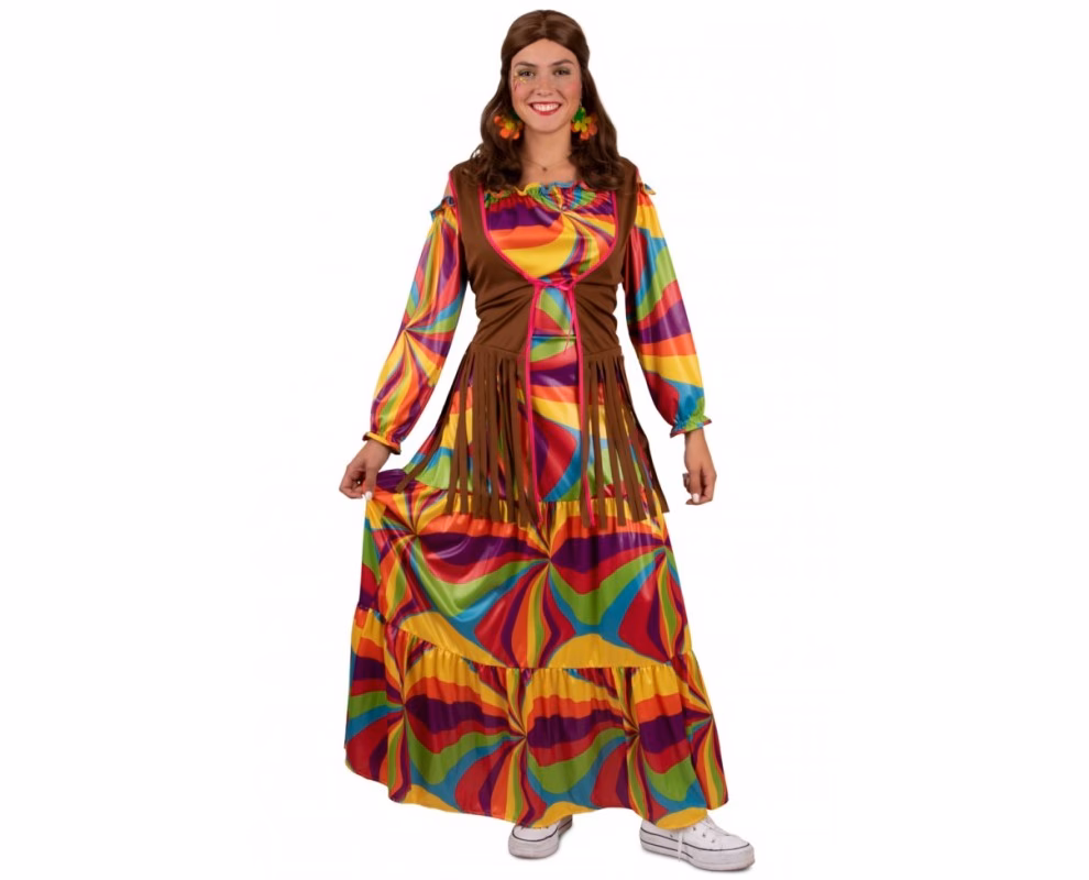 - Hippie Jurken: Lange, vloeiende maxi-jurken met bloemenprints of paisley-patronen waren erg populair. Ze straalden een vrouwelijke en elegante uitstraling uit, vaak gecombineerd met franjes of ruches. Kortere mini-jurken met felle kleuren of psychedelische prints waren ook in trek voor een speelsere en gewaagdere look.