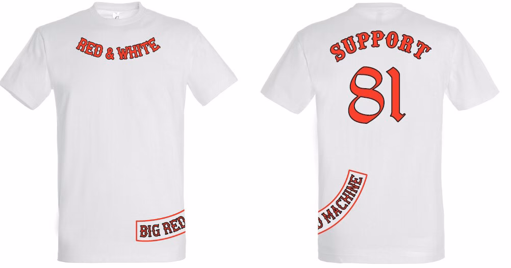 | The Big Red Machine T-shirt | Casual dracht, steun tonen | Nee, tenzij uitzonderlijk ontwerp | Support, affiliatie, wereldwijde club | Katoen (Fruit of the Loom) |